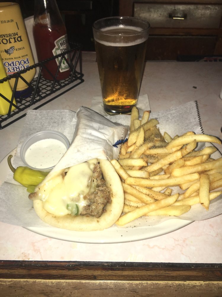 Sauteed ground round with green pepper and onion, topped with Ranch dressing and pita